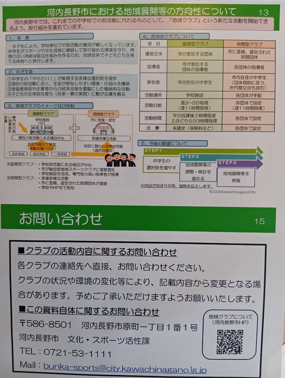 河内長野市(大阪)では、中学校での部活動に代わるものとして、「地域クラブ」という新たな活動に取り組んでいます!